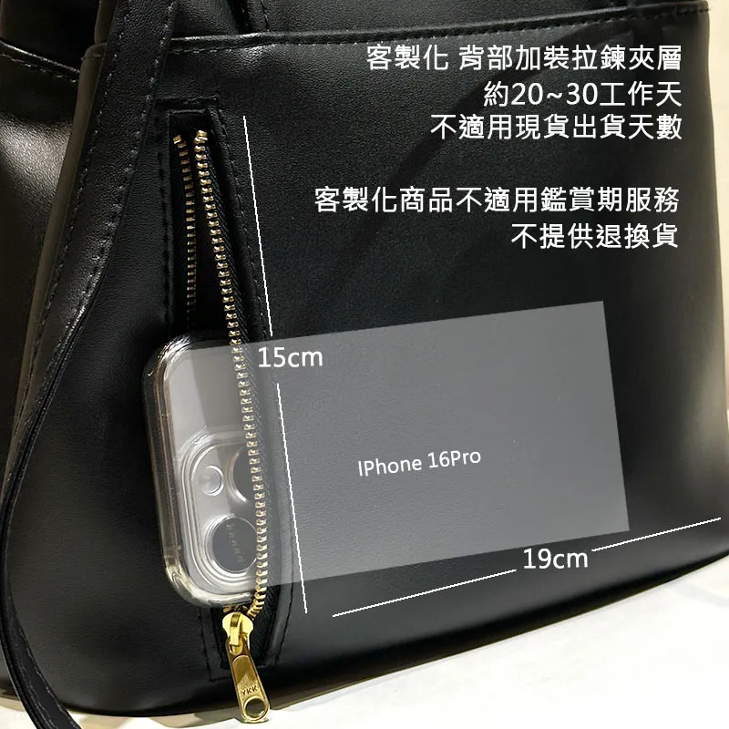 可選配客製化 : 背部增加拉鍊夾層
